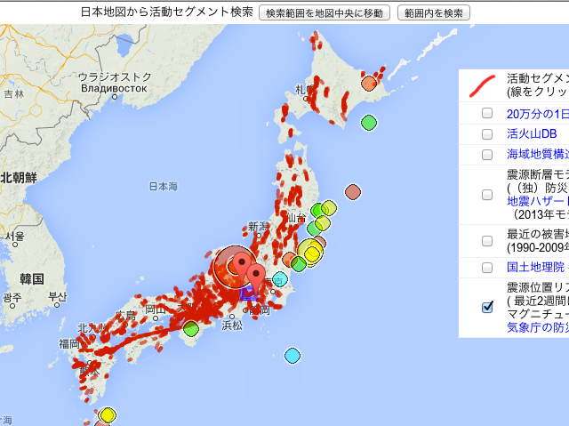 引きで見ると、日本人は活断層と共に暮らしていますね。
