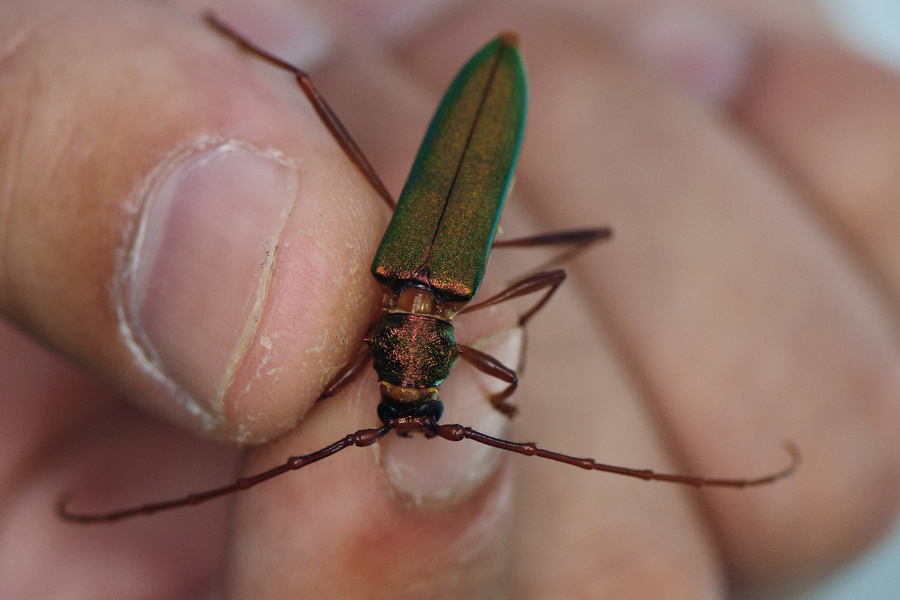 独特の細さがホソキリンゴだ!と直感させてくれるのですが、リンゴカミキリ類に慣れていなかったり、遭遇した経験がないと判らないことがあります(当然のごとく私も見慣れるまでは駄目でした)。