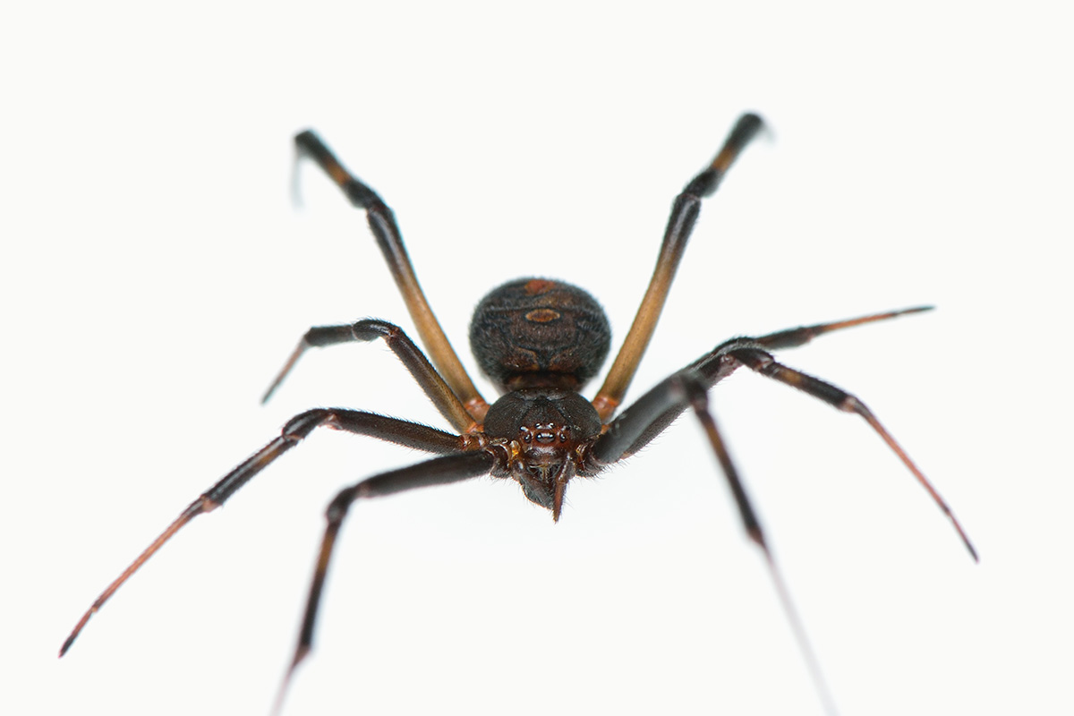 セアカゴケグモ雌のです。正面からだと特徴的な赤い模様がはっきり見えません。