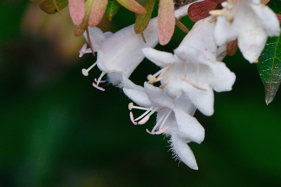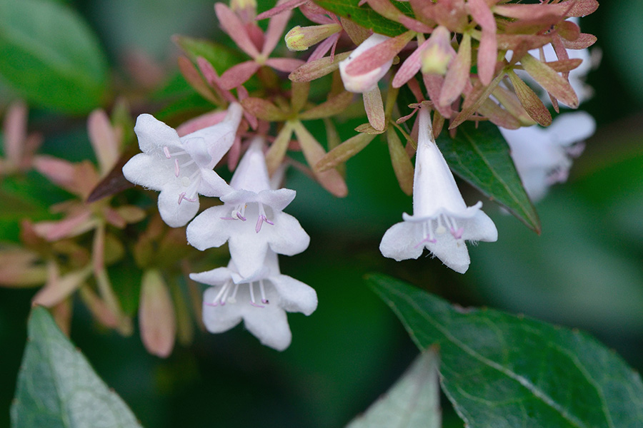 アベリアとも呼ばれています。花期が長く、初夏から晩秋まで咲き続けますので、公園などでに好んで植栽されます。夏以降他の花が少なくなると、多くの虫が吸蜜にやってきます。
