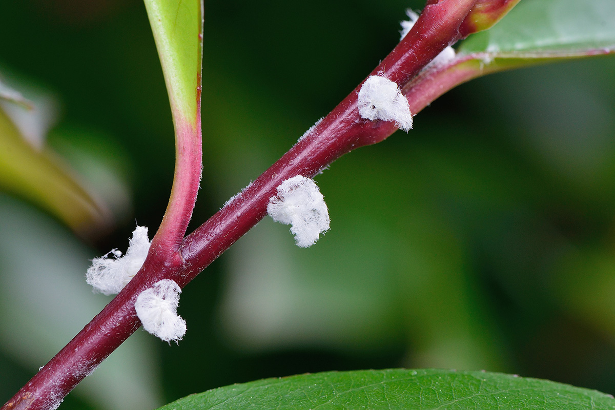 ご近所のレッドロビンにいたチュウゴクアミガサハゴロモの幼虫です。