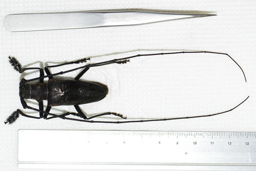 ヒゲナガカミキリ族の『族長』的存在です。日本最大と言われるシロスジカミキリ並の大型種で、特に大型の雄は、触角を含めると国内最長ではなかろうかという程迫力があります。