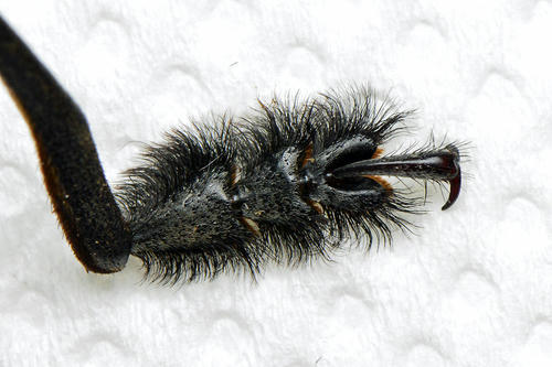 前肢脛節の曲がり方と幅も違いますが、単独で見たときには頭楯が判り易いと思っています。