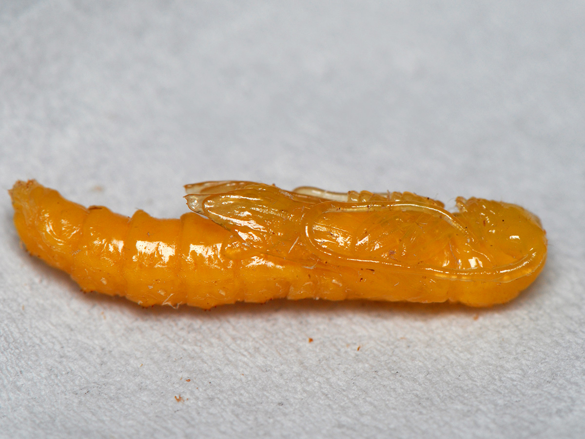 最近はサビカミキリ類の蛹ばかり見ていた所為か、大きさと色の美しさに驚いてしまいます。とくにそのスレンダーな体型は幼虫のだらしない姿からすると、恐るべき変化と言えそうです。