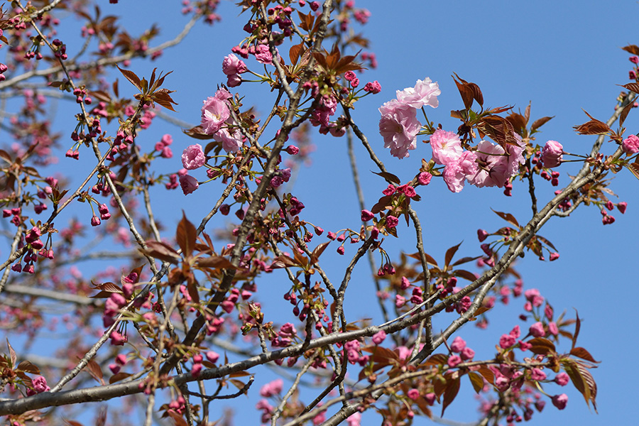 Cherry blossoms of 'Kanzan' in Kashiwa city, Chiba prefecture, Japan.
