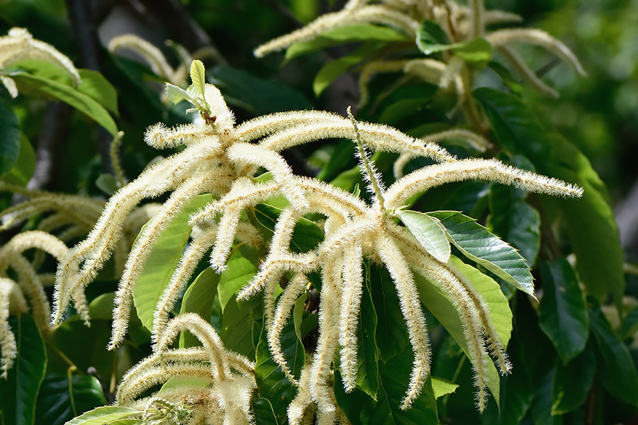 栗の花は、雄花だけの雄花序と、雌花を根元にもつ雌雄混生の花序があります。