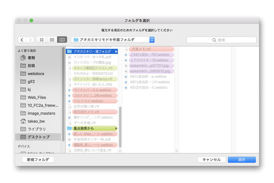 <3>復活させたい[ファイル、またはフォルダ]を選ぶ