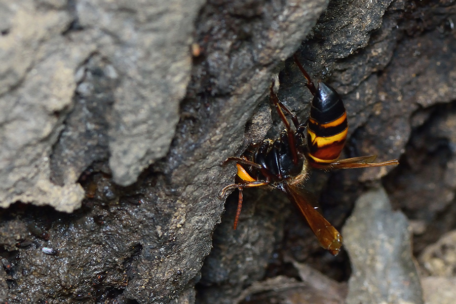スズメバチの仲間としては攻撃性が最も弱く、撮影も安心です。