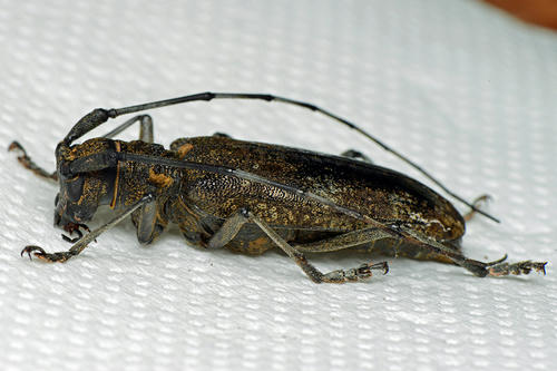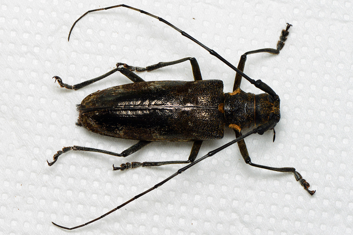 ヒゲナガカミキリ族の『族長』的存在です。日本最大と言われるシロスジカミキリ並の大型種で、特に大型の雄は、触角を含めると国内最長ではなかろうかという程迫力があります。