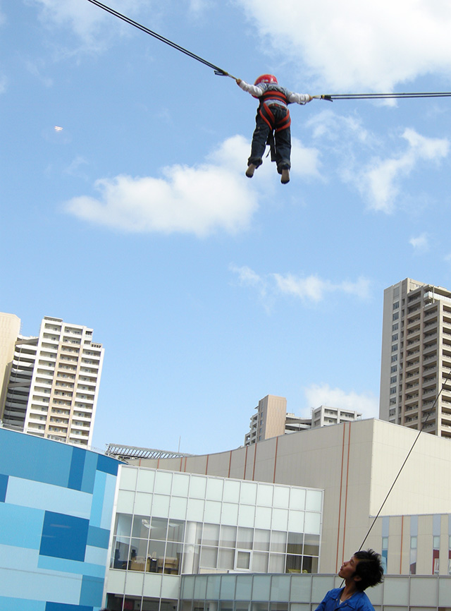 びよよよぉ〜ん、と子供が宙に舞っています。