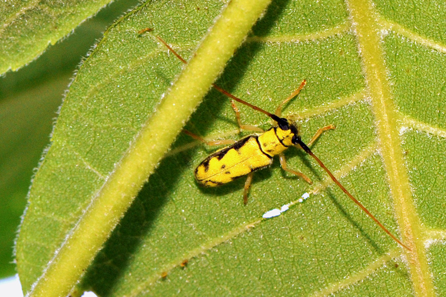一部枝が垂れ下がっているところがあり、105mmのレンズでなんとかここまで撮ることができ、大満足です。山のカミキリだと思っていましたし、茨城県では北部まで行かないと難しいだろうと思っていましたので、南部で確認できたのも嬉しい驚きでした。