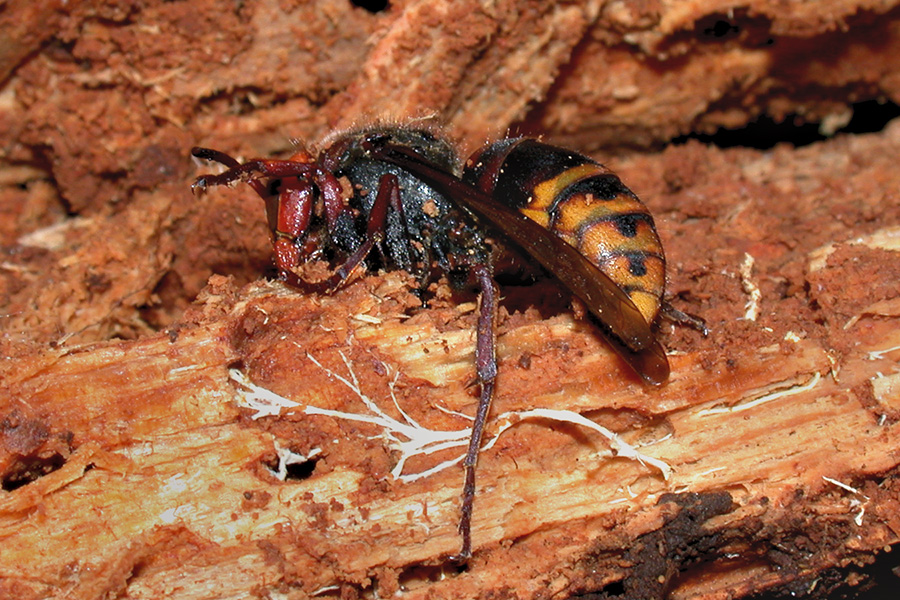 朽木で越冬していたモンスズメバチです。