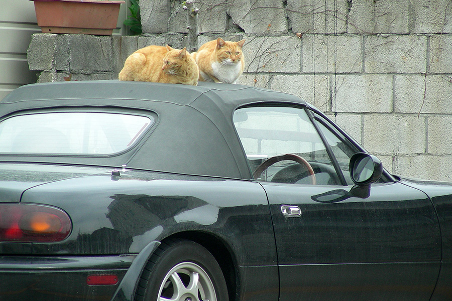 ほんのり暖かくて、布の感触も好いにゃん。犬も上ってこれないし・・・