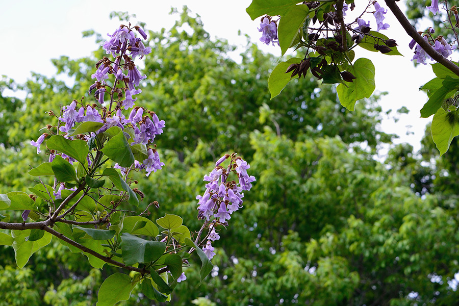 花は風などで落ち易く、樹下が紫色に染まっていることもあります。
