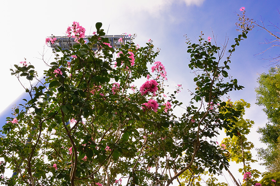 柏の葉公園サッカー場照明塔横にサルスベリが咲いていました。